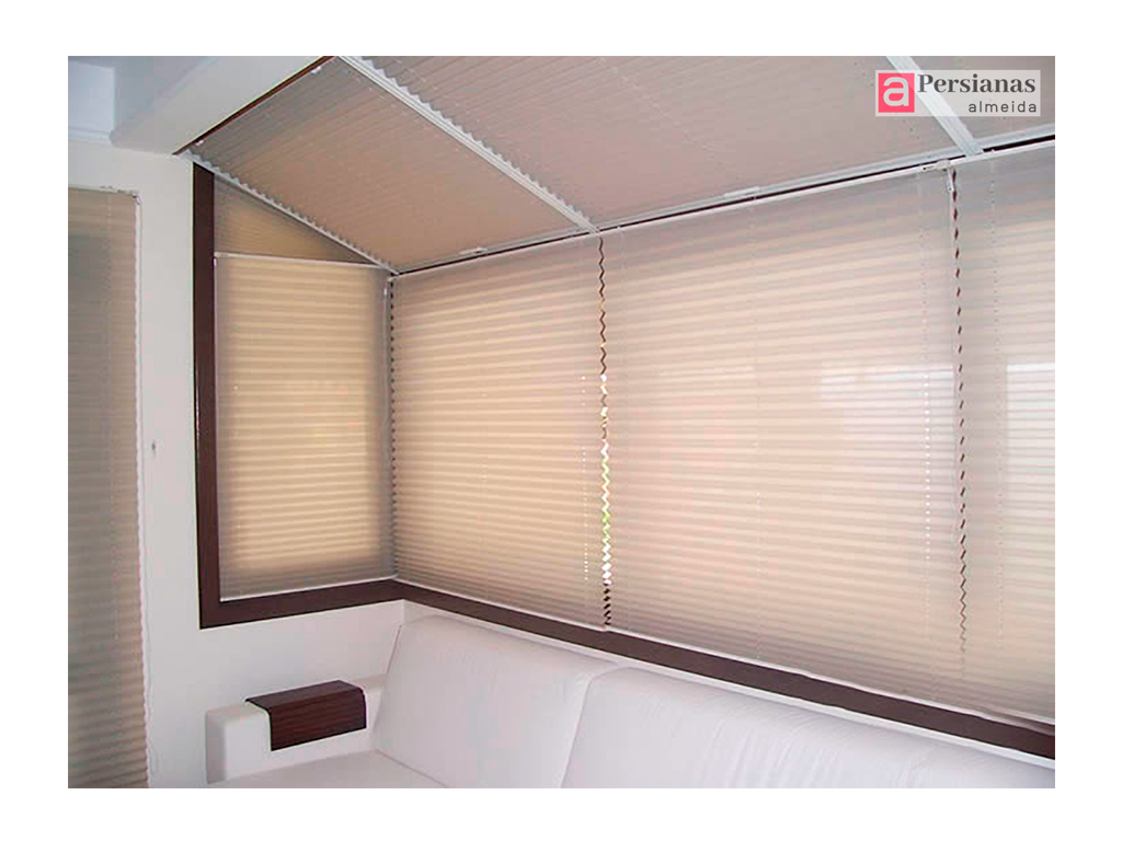 Com delicadas dobras, ocupa pouco espaço quando recolhida. Ideal para a instalação dentro de vãos. Pode ser feita com proteção solar em tecidos translúcidos e blackout.